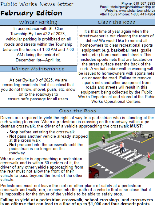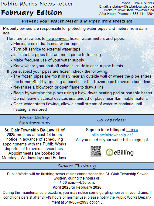 E-mail address for public works: stclairpw@stclairtownship.ca Phone: (519) 867-2993 option 3