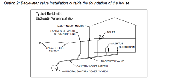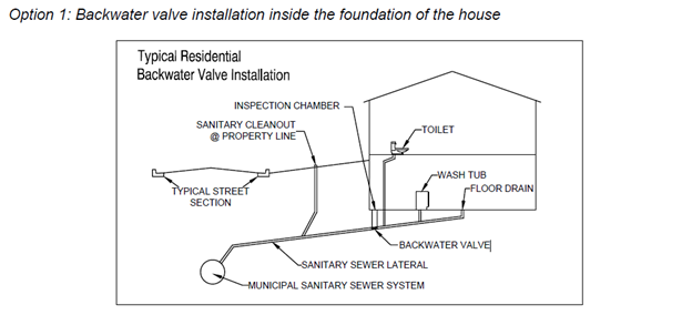 Homeowners who have experienced sanitary sewer backups in the past should be encouraged to consider installing a backwater valve on their sanitary sewer lateral as a potential solution to preventing future sanitary sewer backups or flooded basements.