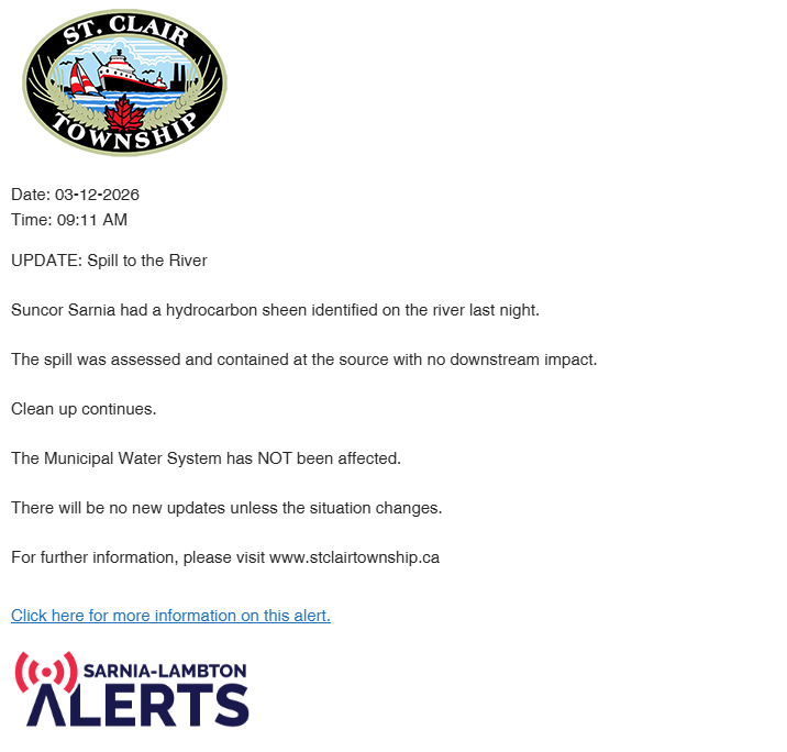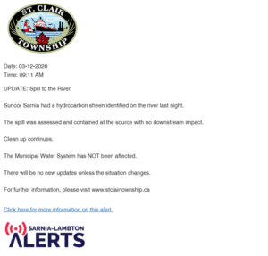 December 31, 2025 – January 5, 2026 – The flag in front of the St. Clair Township Civic Centre, Mooretown Sports Complex and Emergency Services are lowered to half-mast in memory of the late John DeMars. John DeMars was the voice of experience in municipal matters for 36 years, beginning his career in Sombra Township,